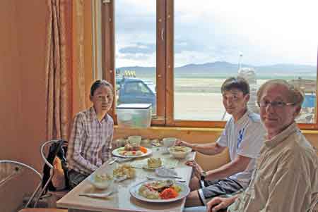 Fiez vous à votre guide pour choisir le menu. Les plats traditionnels mongols sont à base de mouton, si possible très gras nageant dans un bouillon bien chaud, gras lui aussi. Miam !