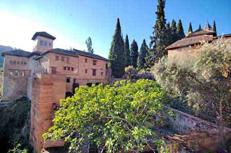 Les jardins du Partal s'étendent de la Rauda (cimetière) jusqu'à l'esplanade et la tour des Dames qu'on voit ici.