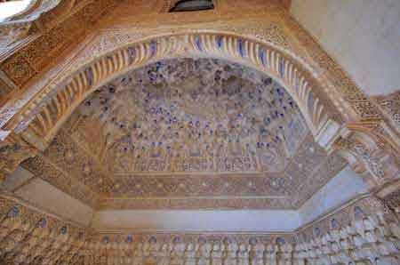 la grande salle du palais avec son plafond représentant la voûte céleste. Les murs sont entièrement décorés de gravures imitant les tapis, c'est un des plus beaux endroit de tout l'Alhambra.