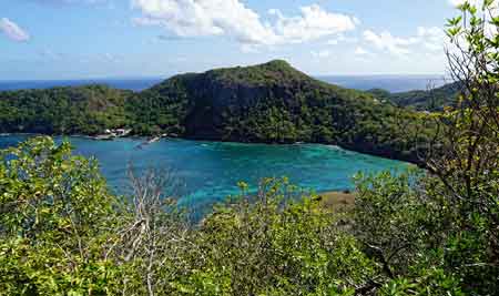 La baie de terre de Haut, avec une vue sur terre de Bas, toute proche.