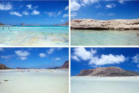 Balos et son lagon aux eaux turquoises et son sable blanc : on y va en voiture via un chemin plus ou moins carrossable sur 8km puis 2km à pied à partir de Kissamos, ou à Kissamos prendre un bateau qui fait la navette (un peu plus d'1km) : il y a de petits bateaux qui peuvent vous éviter d'avoir la foule, mais il faut partir tôt, les gros bateaux déverseront de toutes façons 300 personnes en une fois dans le lagon (en juillet et en août).
