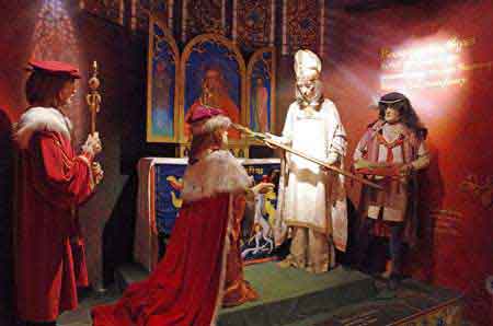 la salle de la couronne et la pierre de la destinée où furent couronnés tous les souverains d'Ecosse