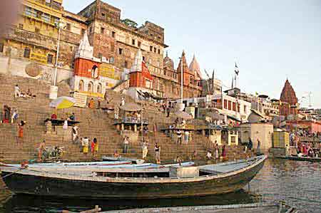 ablutions matinales. Les gaths, ce sont les marches sur quais du gange, le