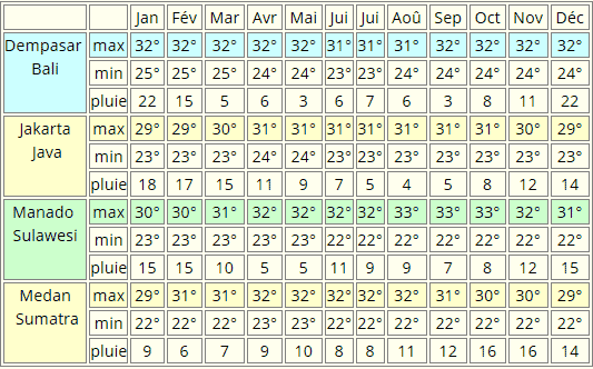 La météo en Indonésie : à Bali, Java, Sulawesi et Sumatra