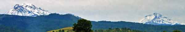 Sur la route on apperçoit le Popocatepelt et la femme couchée, 2 montagnes aux sommets enneigés toute l'année.