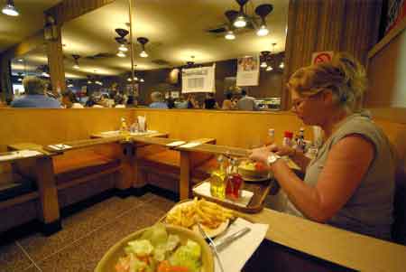 Il est temps de se restaurer. Un restaurant assez original, fréquenté par des employés est tout près. Bon et pas cher. Chaque convive est dans installé comme dans un siège bébé, avec la table qui ferme l'enclos.